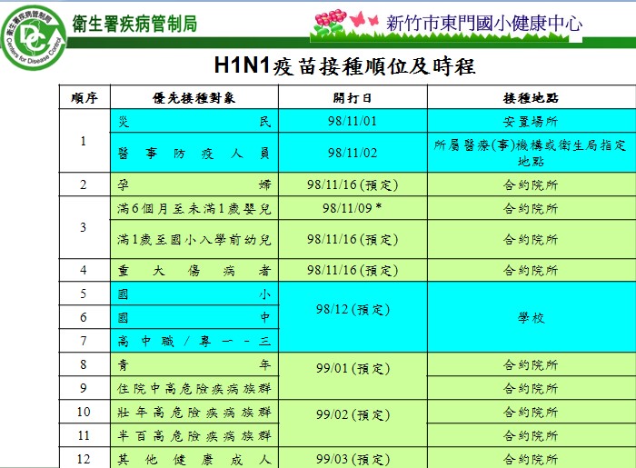 幼稚園是第三順位喔! 接種地點:合約醫院還有衛生所也可!請家長別誤會CDC喔!