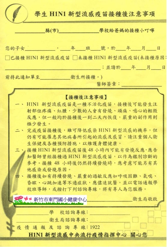*學校H1N1接種作業-同意但臨時不適補接種說明 –981124版新竹市衛生局