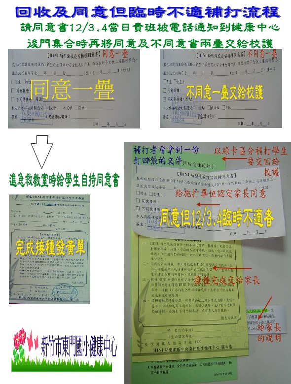 老師及家長請看健康中心12/3.12/4新流感疫苗施打的流程圖