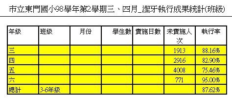 三至六年級三月至四月在校餐後潔牙執行完成率,供師長參閱